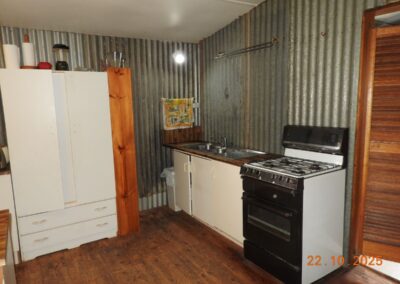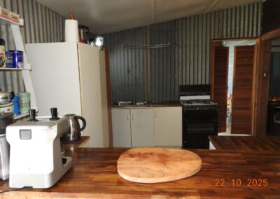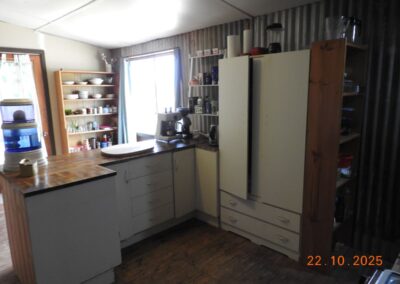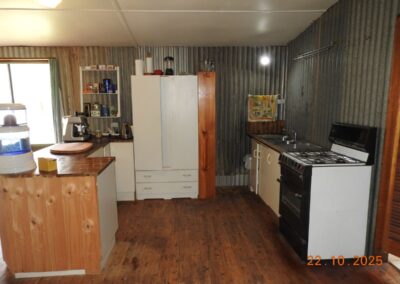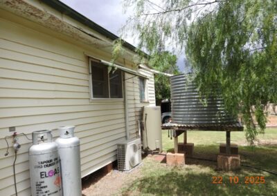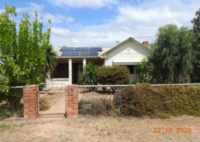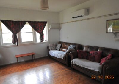 Restumped on bricks, the house has had ceiling insulation, reverse cycle air conditioning and a ~3kW solar system installed. The open fire sees regular use in winter and the kitchen is fitted with a gas oven.