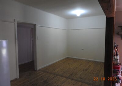 The house is open-plan kitchen living room and lounge. It currently has two bedrooms however the living room and back veranda suit renovation to create another two bedrooms if required.