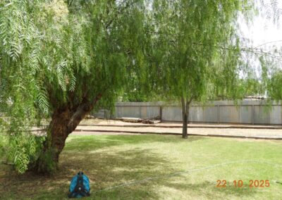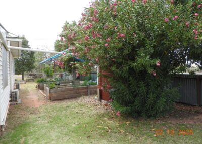 On a half-acre block, the fully fenced grounds with street and laneway access feature raised garden beds under shade, extensive grassed areas, mature fruit and ornamental trees.