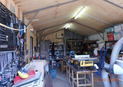 Outbuildings include a 7.5 x 4m lined and insulated corrugated iron garage with air conditioning, concrete floor, shelves, benches and electricity.