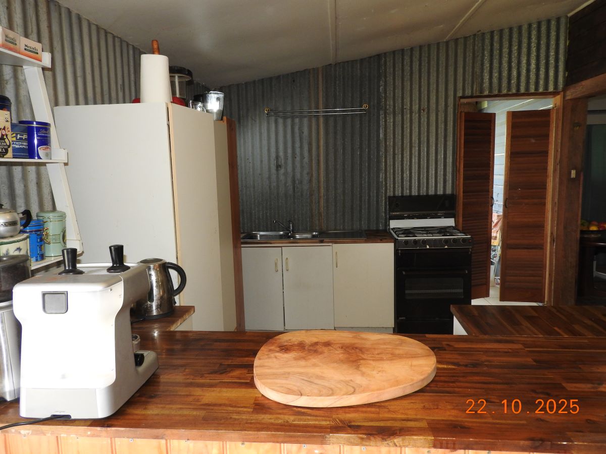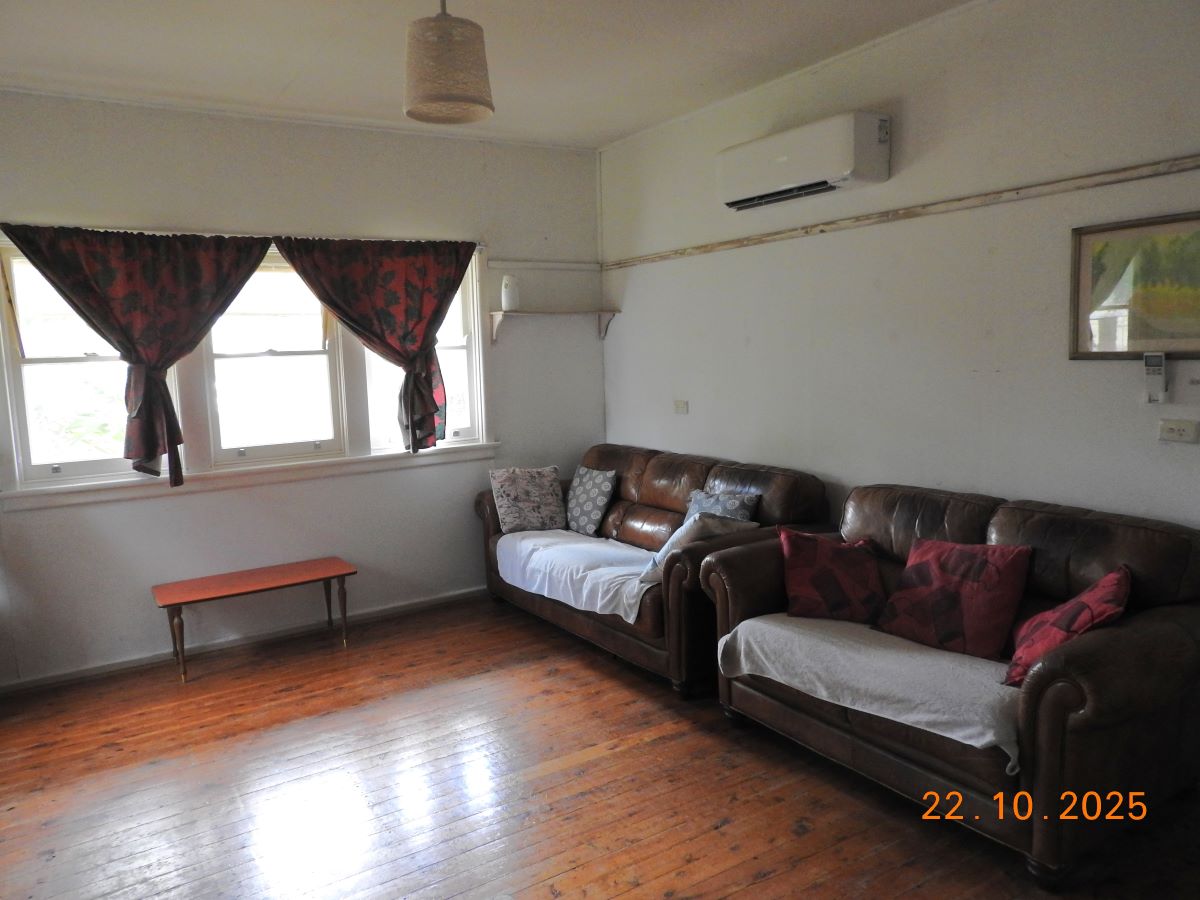 Restumped on bricks, the house has had ceiling insulation, reverse cycle air conditioning and a ~3kW solar system installed. The open fire sees regular use in winter and the kitchen is fitted with a gas oven.
